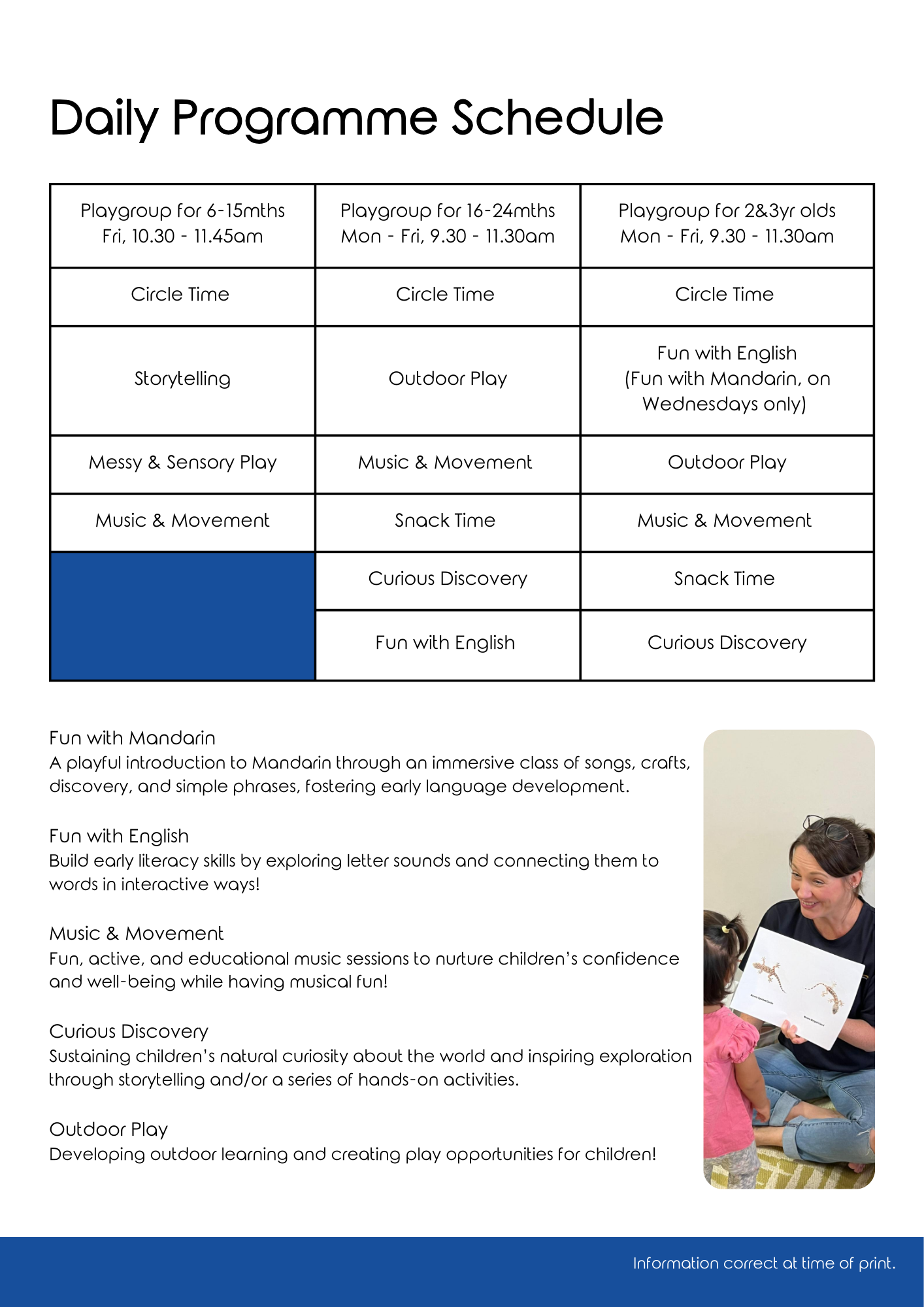 At this age, toddlers are also making new discoveries daily. As they begin to exert their independence, the activities within the programme will help them open their eyes to a world of learning, sharing, and exploring.